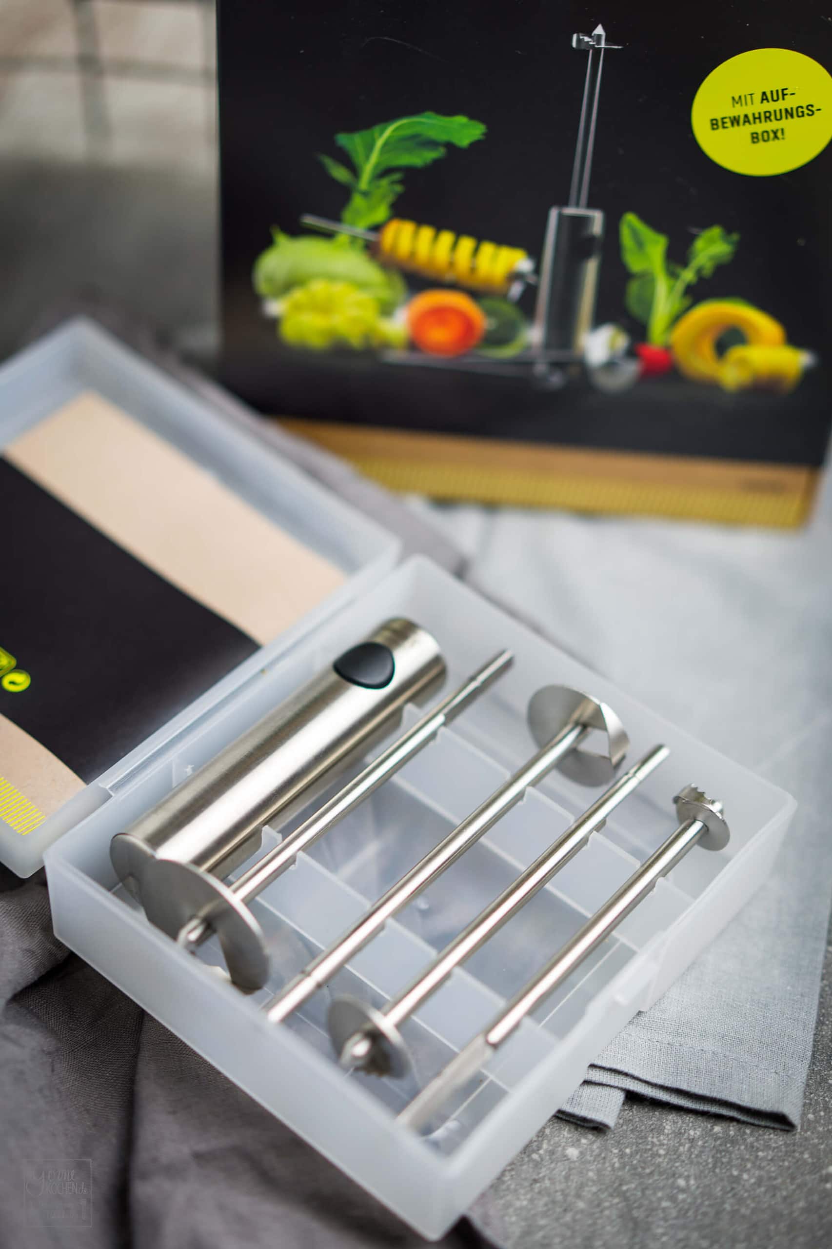 Um es kurz zu machen, ein unglaublich praktisches und durchdachtes Küchenwerkzeug, kreiert und hergestellt in Deutschland! Wir haben schon seit Jahren einen Spiralschneider der gleichen Firma und als wir dieses praktische Helferlein gesehen haben war klar, dass wir es unbedingt testen müssen.