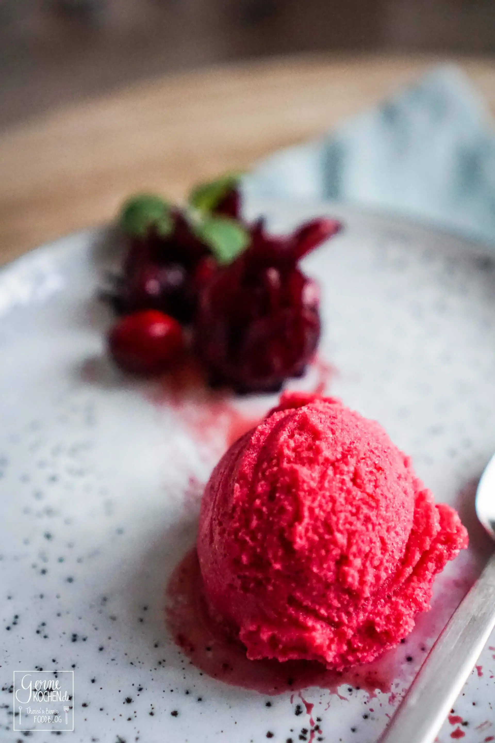 Hibiskus-Cranberry-Sorbet: Gang Nr. 5 beim #10GängefüreinHalleluja