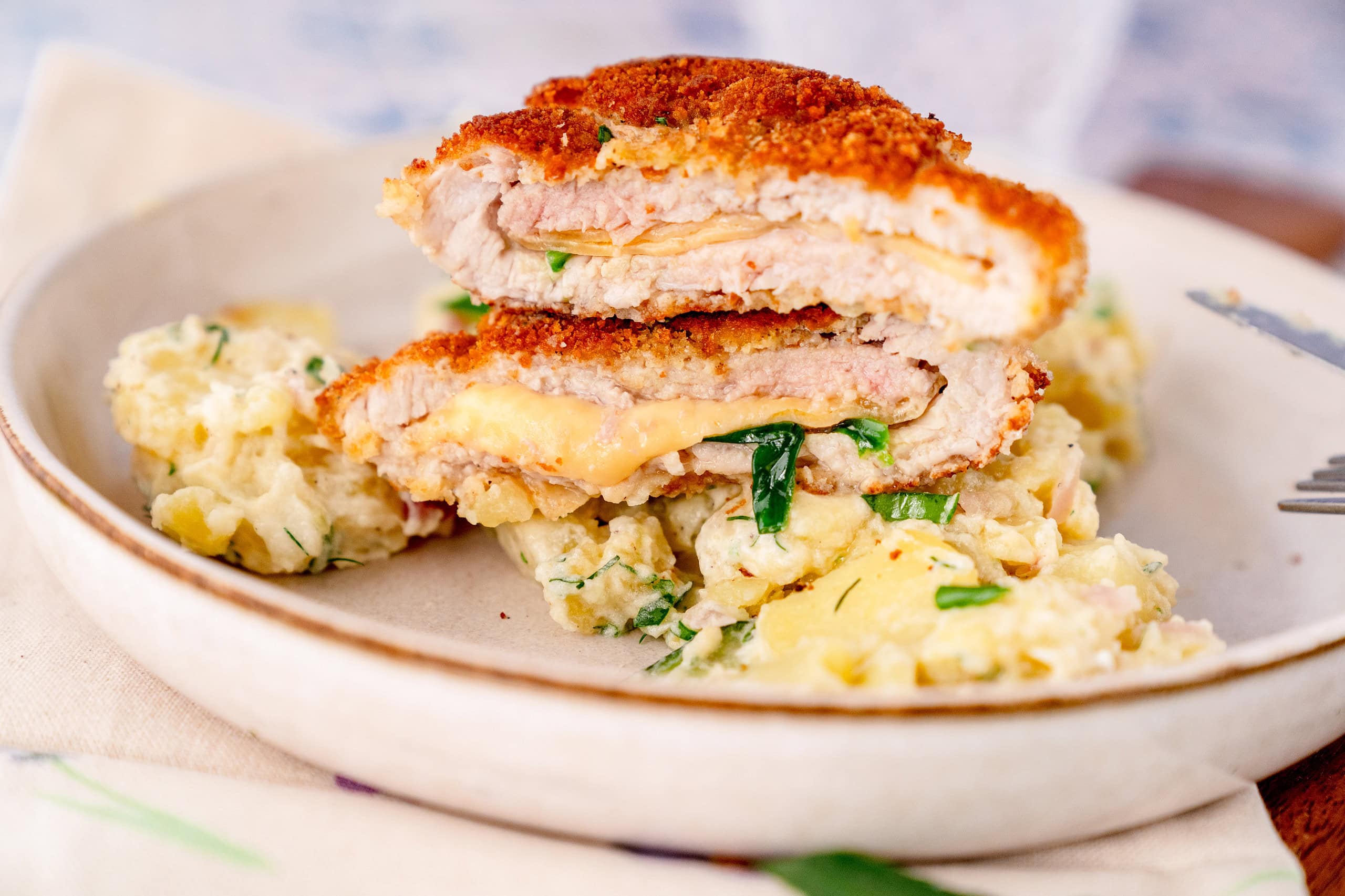 Dieses Bärlauch Schnitzel ist die Krönung der Bärlauch-Saison! Wir füllen zartes Schweinefleisch mit aromatischem Bärlauch aus dem Garten und kräftigem, altem Gouda. Die Panade aus einer Mischung von Semmelbröseln und Panko sorgt für einen unvergleichlichen Crunch, den Du so nur bei uns findest. Ein einfaches, aber raffiniertes Gericht, das den stressigen Alltag vergessen lässt und echtes Soulfood auf den Teller bringt. Perfekt serviert mit einem Spritzer Zitrone und einem hausgemachten Kartoffelsalat.