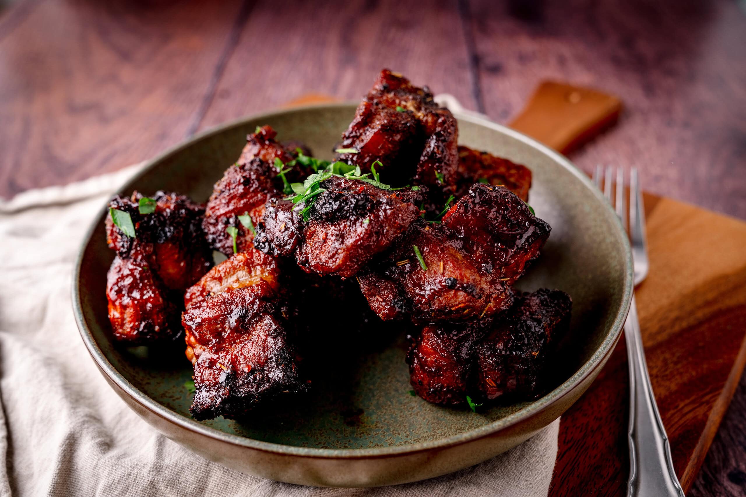 Wer liebt sie nicht, die kleinen, klebrigen Fleischwürfel vom Grill? Unsere Pork Belly Burnt Ends aus dem Airfryer bringen Dir das echte BBQ-Erlebnis direkt in die Küche. Durch die Kombination aus hoher Hitze zu Beginn und einer Schmor-Phase in Butter und Sauce werden die Schweinebauch-Stücke unglaublich zart und erhalten eine glänzende, süß-rauchige Kruste. Perfekt als Fingerfood für Partys, zum Super Bowl oder wenn Du Dir einfach mal etwas richtig Gutes gönnen willst. Ohne Smoker, ohne Stress, aber mit 100% Geschmack.