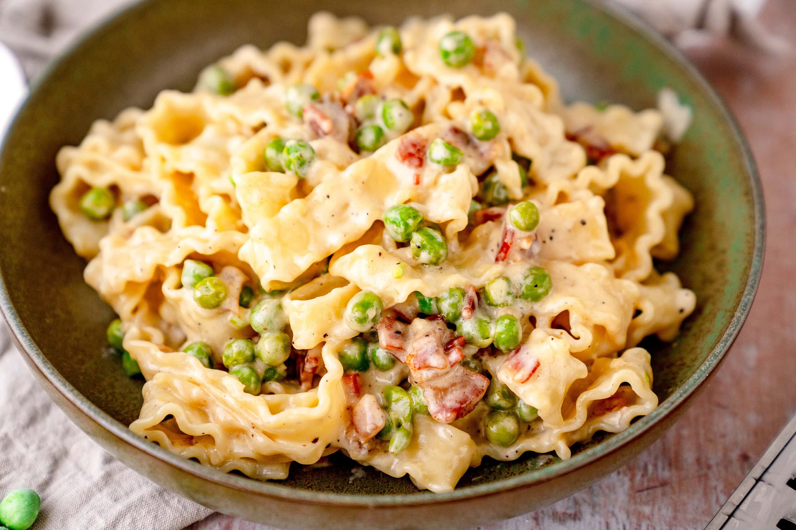 Diese Cremige Pasta mit Pancetta und Erbsen ist die schnelle, familienfreundliche Version der Carbonara. Die Kombination aus knusprigem Speck, süßen Erbsen und einer samtigen Sahnesauce macht dieses Feierabend-Rezeptunwiderstehlich. Mit den Tipps von Theres & Benni wird deine cremige Pasta perfekt!
