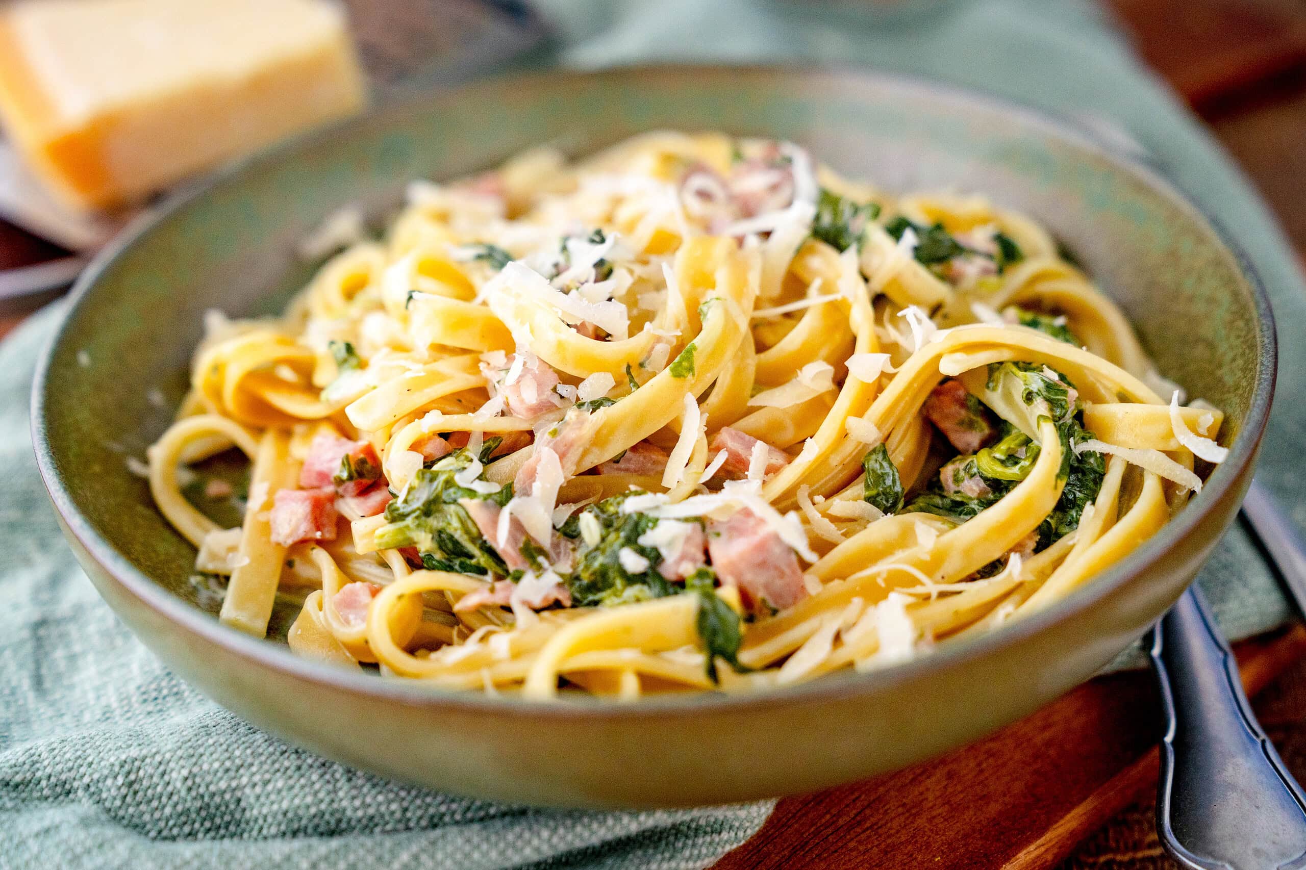 Diese schnelle Pastasauce kombiniert herzhaften Kochschinken mit mildem TK-Blattspinat, Frischkäse und Parmesan. Perfekt für ein unkompliziertes Feierabendgericht oder ein gemütliches Familienessen. Die Sauce ist im Handumdrehen fertig, vielseitig abwandelbar und passt besonders gut zu Pasta oder Gnocchi.