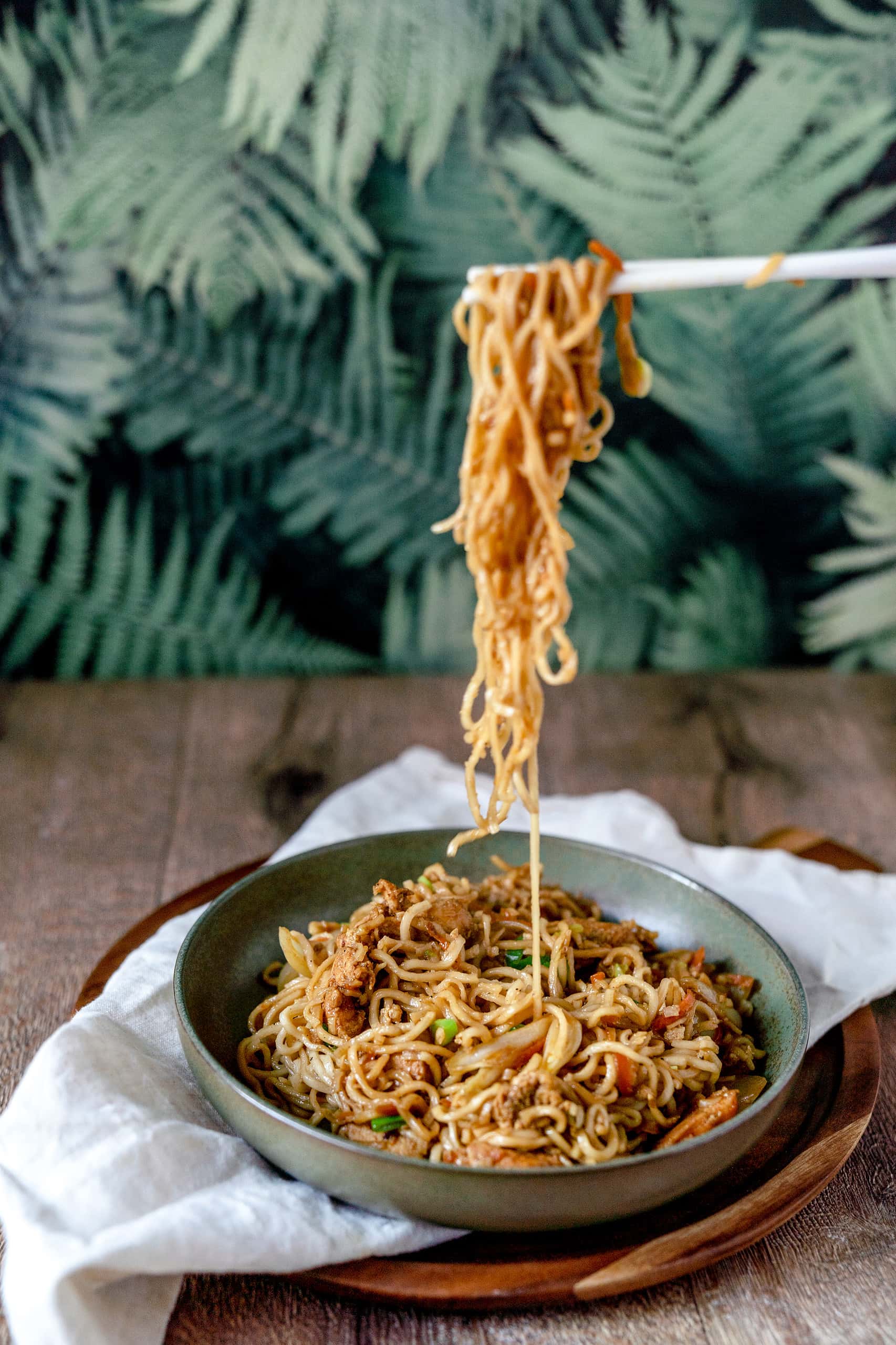 Hähnchenbrust in feine Streifen schneiden, mit MY THAI würzen und in einem Wok oder einer Pfanne mit etwas Pflanzenöl scharf anbraten. Wenn ihr kein MY THAI habt, einfach mit Salz und Pfeffer würzen. Schmeckt anders, aber auch lecker.