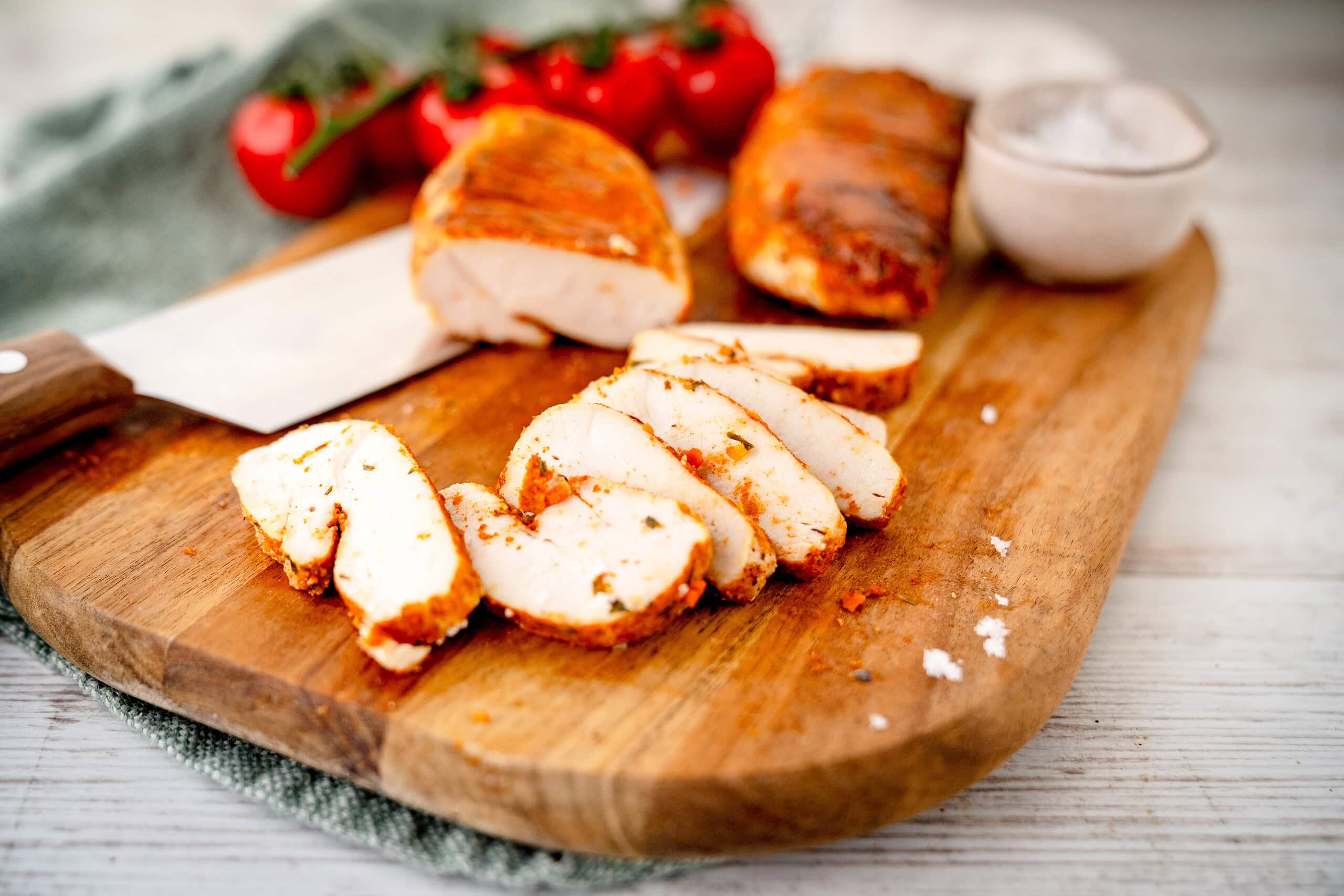 Einfach und lecker: Hähnchenbrustaufschnitt aus der Heißluftfritteuse gelingt mit nur drei Zutaten und minimalem Aufwand. Würzig mit HÖMMA LECKA verfeinert, wird das Fleisch zart gegart, im Kühlschrank durchgezogen und perfekt in feine Scheiben geschnitten. Dieses Rezept ist ideal für gesunde Brotbeläge oder proteinreiche Snacks und passt in jede Meal-Prep-Routine!