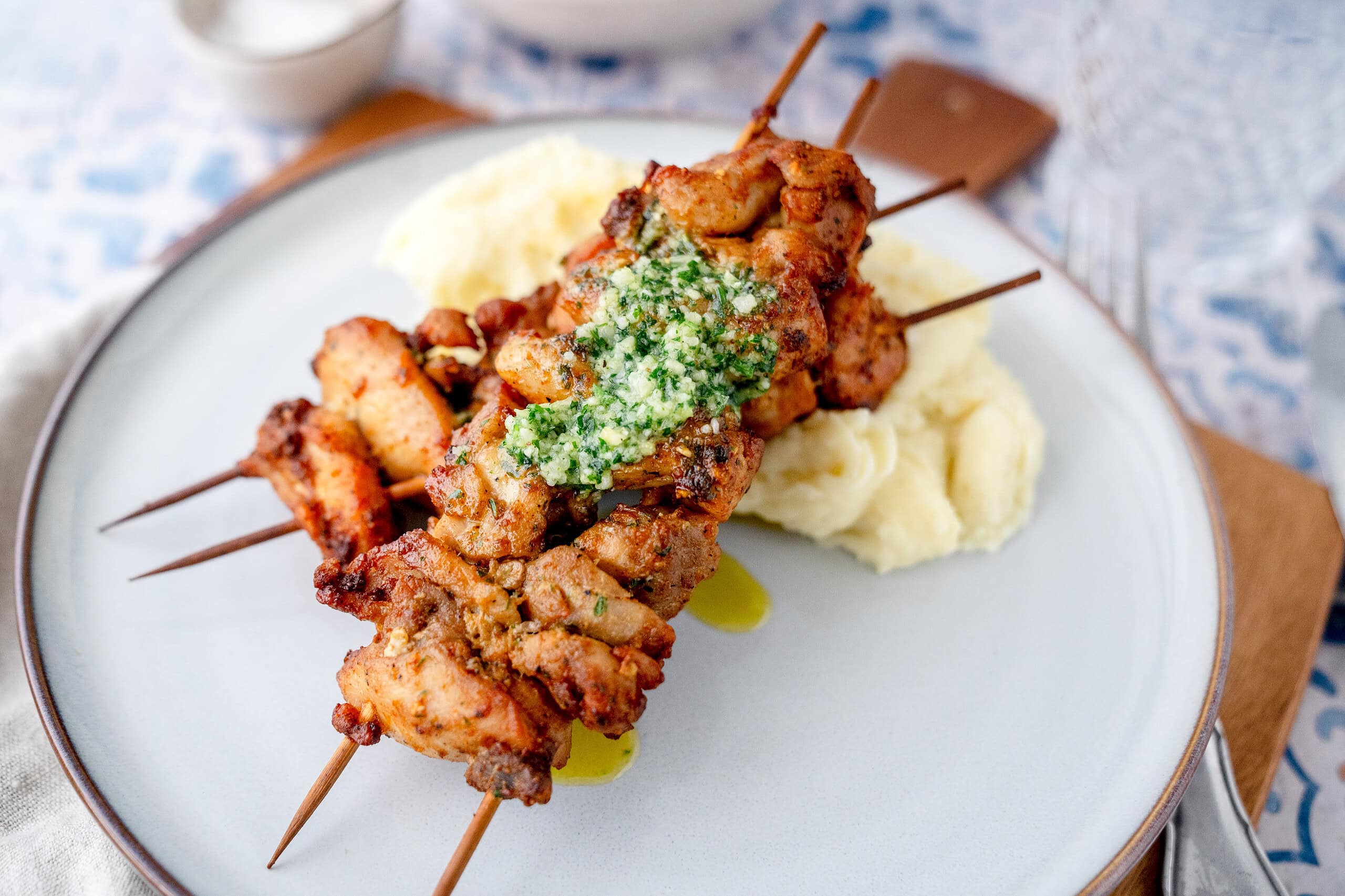 Hähnchenspieße aus der Heißluftfritteuse mit Knoblauch-Parmesan-Butter
