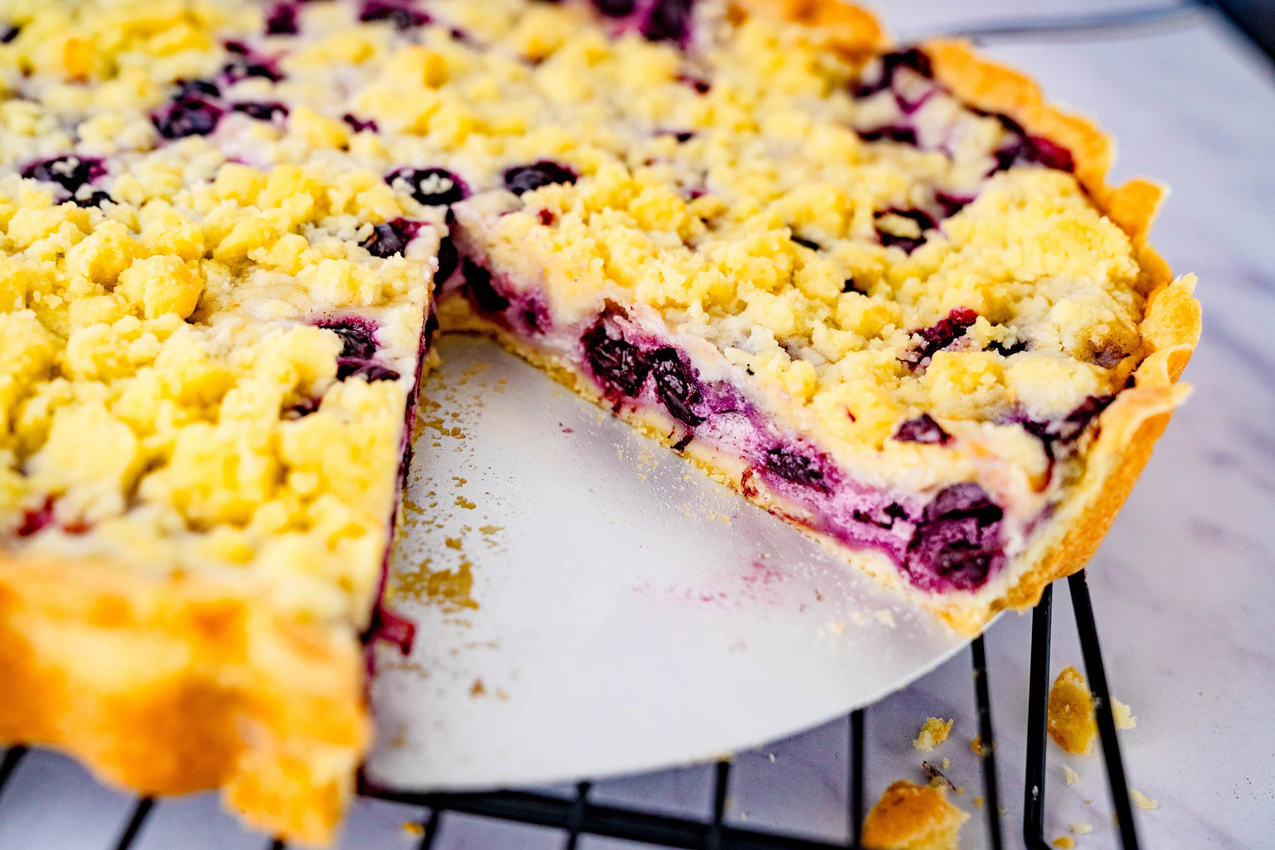 Backen: Die Heidelbeer-Creme auf den Teigboden geben und glatt streichen. Die Streusel darüber verteilen. Die Tarte im unteren Drittel des Ofens für ca. 40 Minuten backen. Etwas abkühlen lassen und servieren.