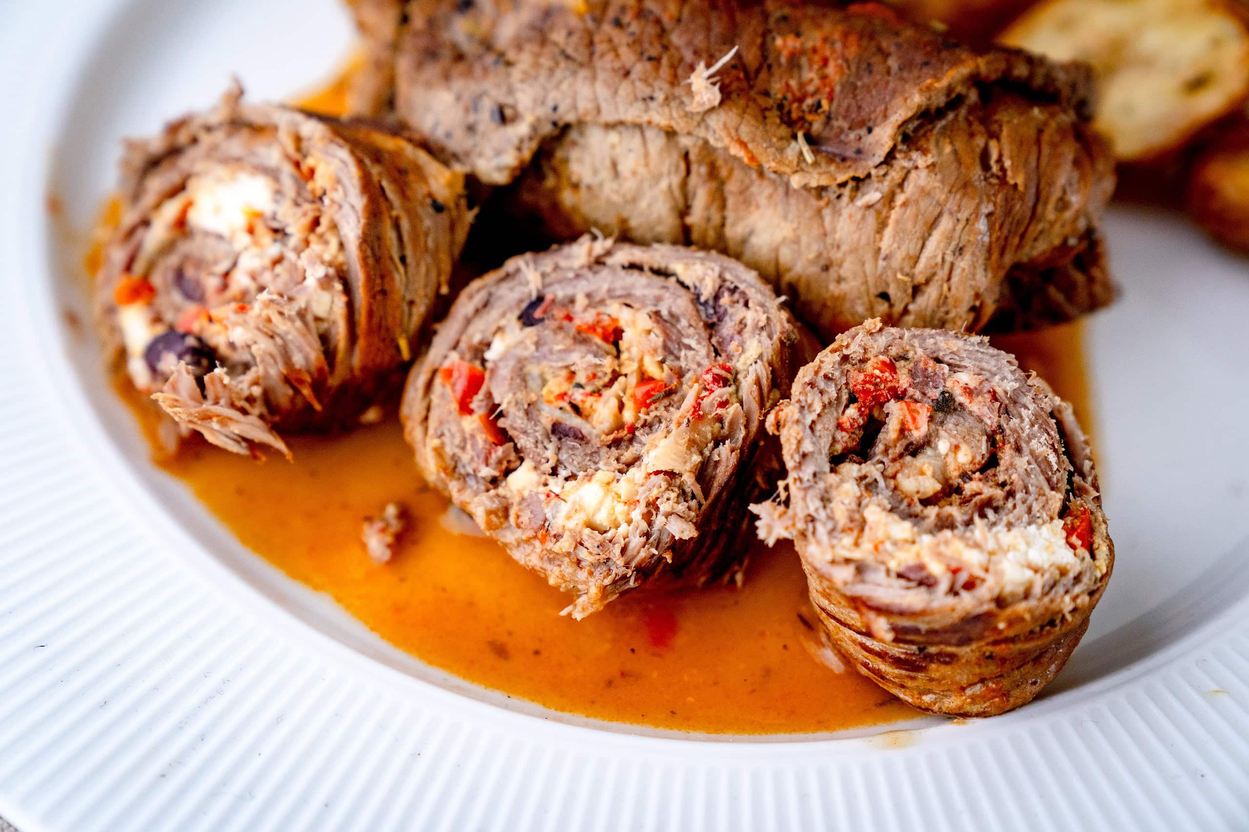 Mediterrane Rinderroulade mit Schafskäse, Oliven und Paprika