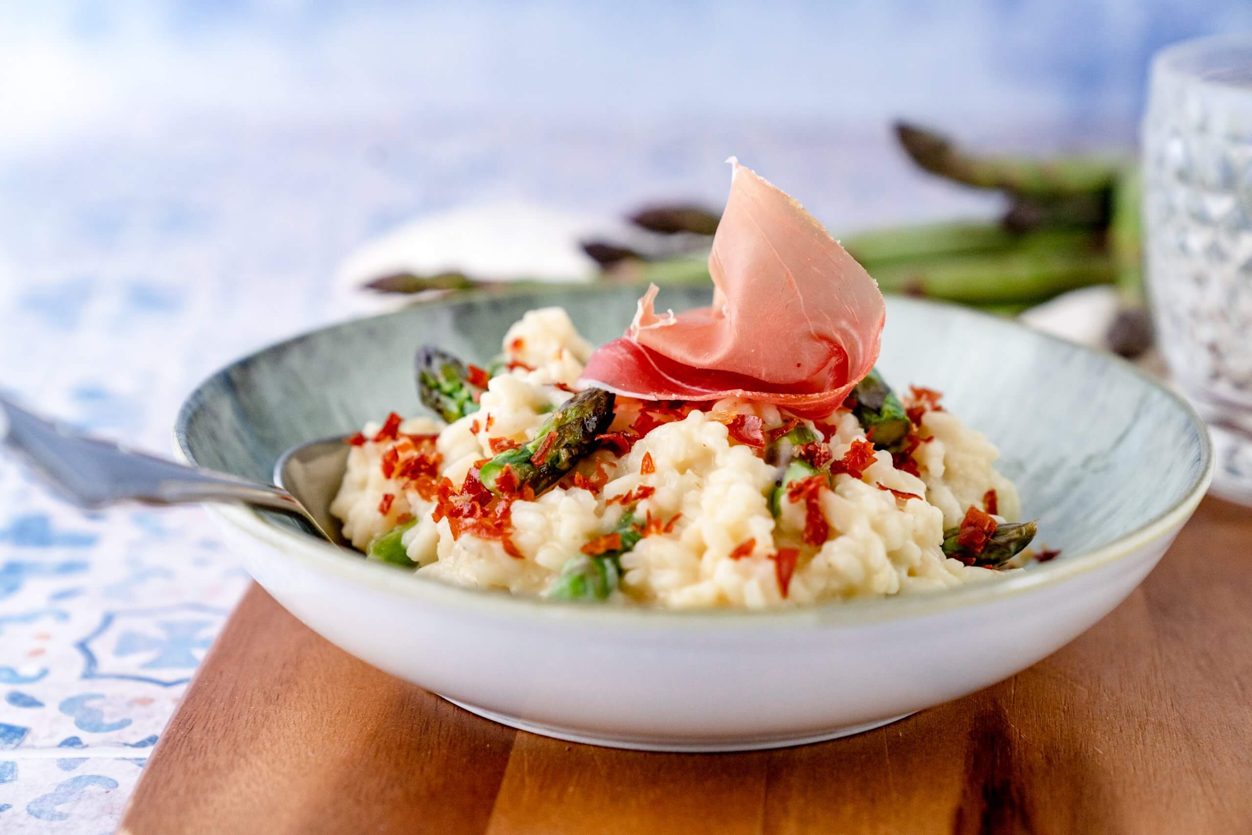 Risotto mit grünem Spargel und Parmaschinken-Crunch