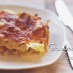 Fettet eine Auflaufform mit Butter ein. Das Sauerkraut in ein Sieb geben und gut ausdrücken. Den Käse raspeln. Jetzt geht es an das Füllen der Form: Gebt ein Drittel des Sauerkrauts hinein und bedeckt es dann mit einer Schicht Lasagneplatten. Dann wieder ein Drittel Sauerkraut dazugeben und ein Drittel der Zwiebelsahnesauce darüber geben. Mit einem Drittel des Käses bestreuen. Dann Lasagneplatten, Sauerkraut, Sauce und Käse ebenso darübergeben.