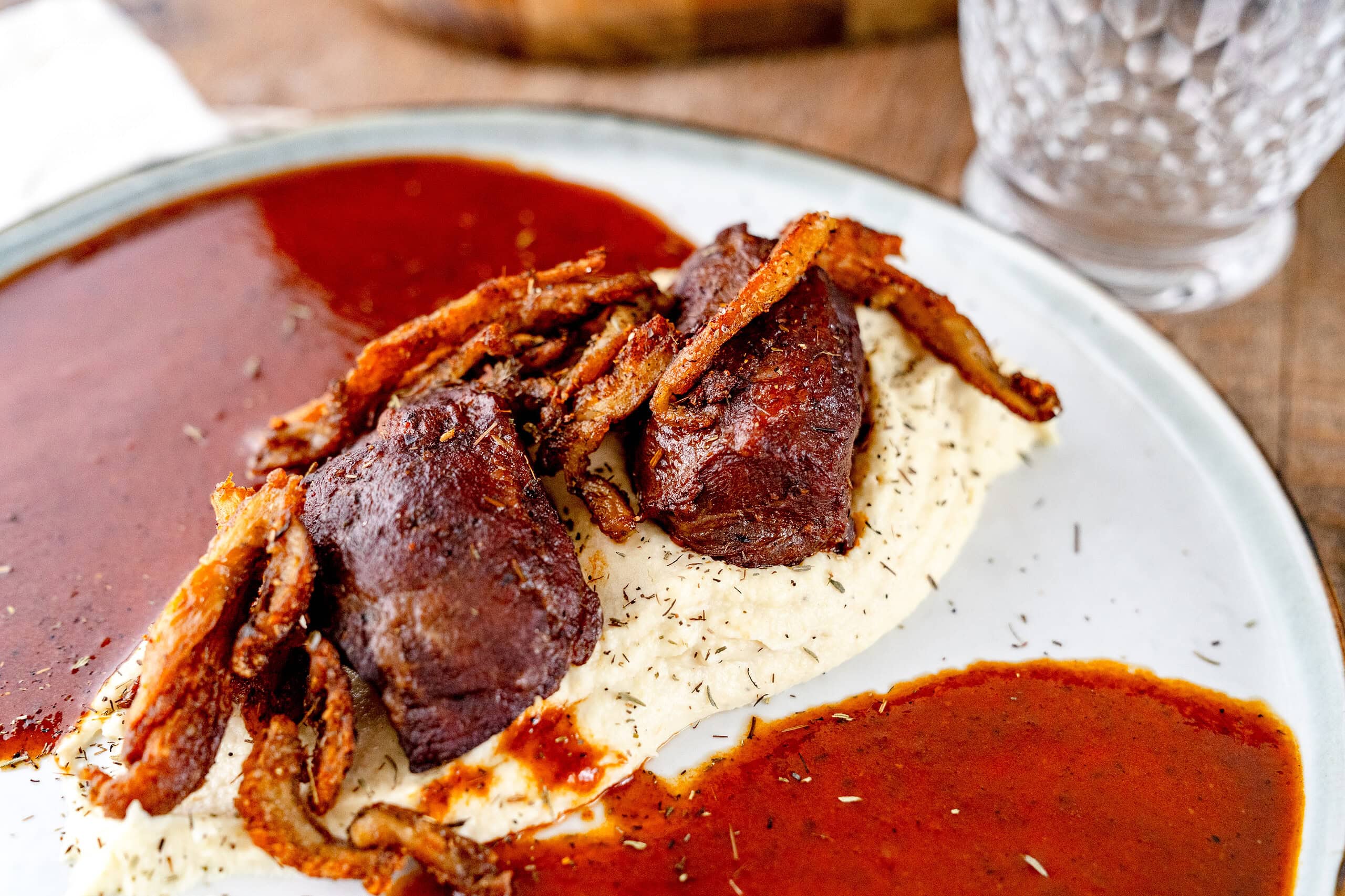 Dieses Rezept für geschmorte Schweinebäckchen mit cremigem Sellerie-Püree und knusprigen Austernpilzen bietet eine köstliche Kombination aus zartem Fleisch, aromatischem Gemüse und knusprigen Pilzen. Durch das langsame Schmoren der Schweinebäckchen in Rotwein und Brühe wird das Fleisch besonders zart und saftig. Der im Ofen geröstete Sellerie verleiht dem Püree eine intensive Note, während die in Butterschmalz knusprig gebratenen Austernpilze für einen perfekten Kontrast sorgen. Mit dieser Schritt-für-Schritt-Anleitung gelingt dir ein geschmackvolles Gericht, das deine Gäste begeistern wird.