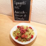 Die Nudeln abgießen sobald diese "Al dente" sind und dann mit der "Avocado-Bacon-Tomaten-Mischung" in eine große Schüssel geben und alles unterheben.