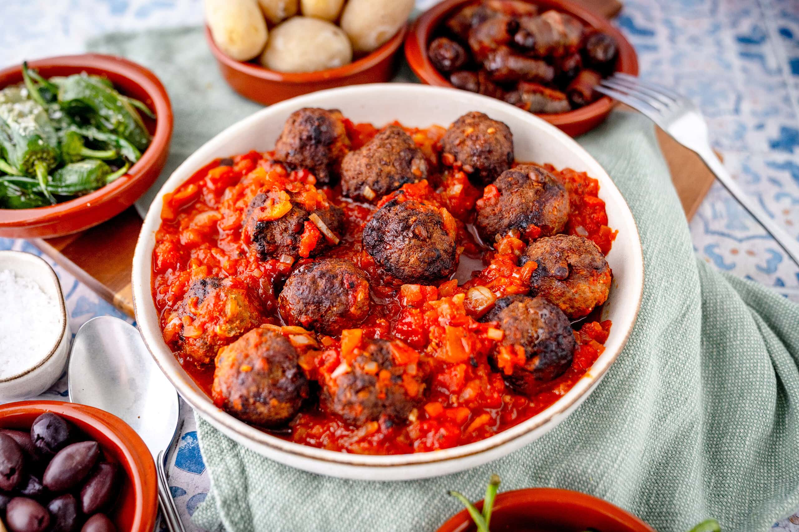 In nur 30 Minuten zauberst du mit dem Airfryer drei spanische Klassiker auf den Tisch: würzige Albondigas mit Tomatensauce, knusprige Datteln im Speckmantel und aromatische Pimientos de Padron. Alles parallel gegart – perfekt für einen unkomplizierten Tapas-Abend!