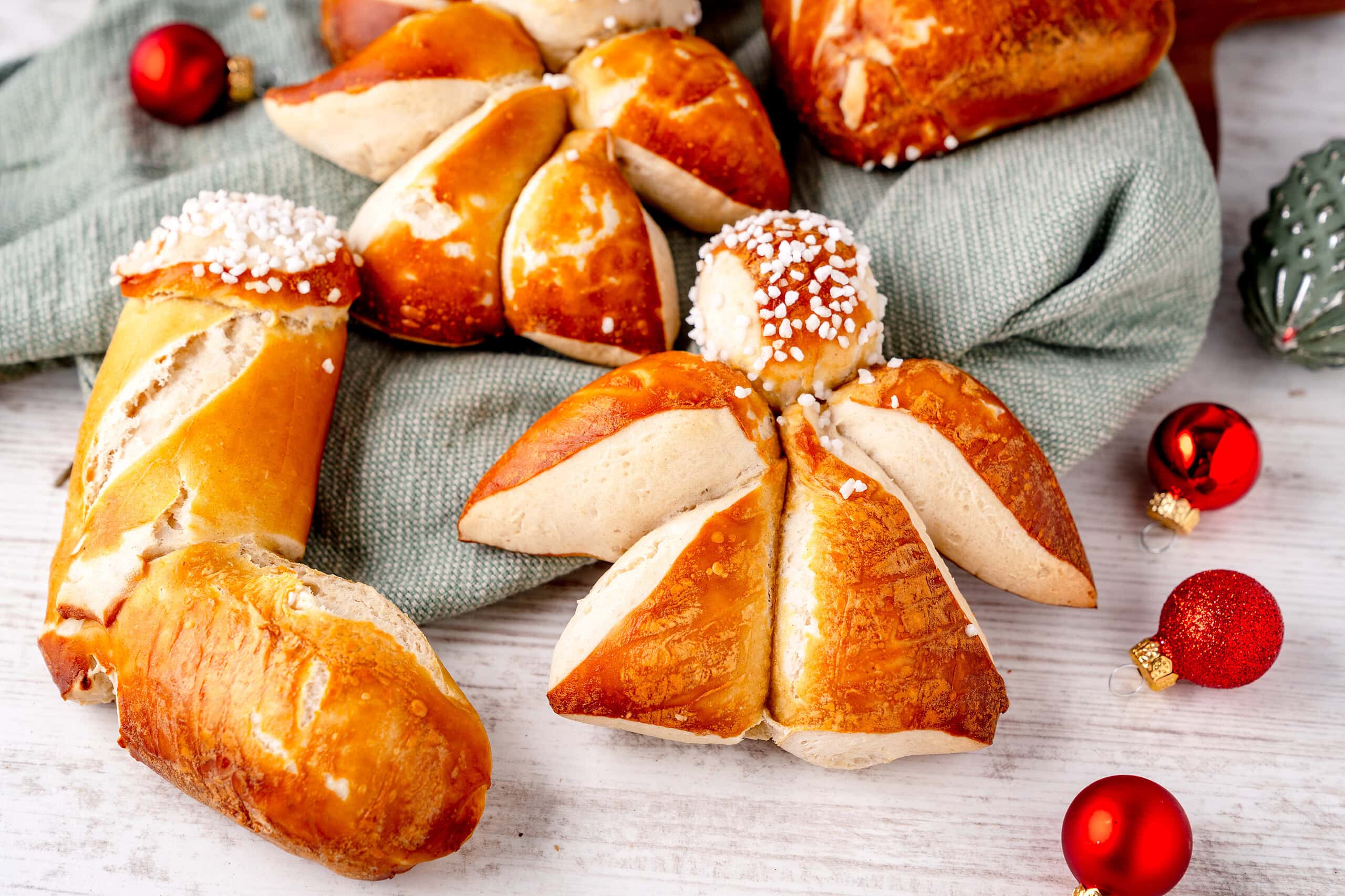 Weihnachtliche Laugenstangen: Laugenengel und Nikolausstiefel